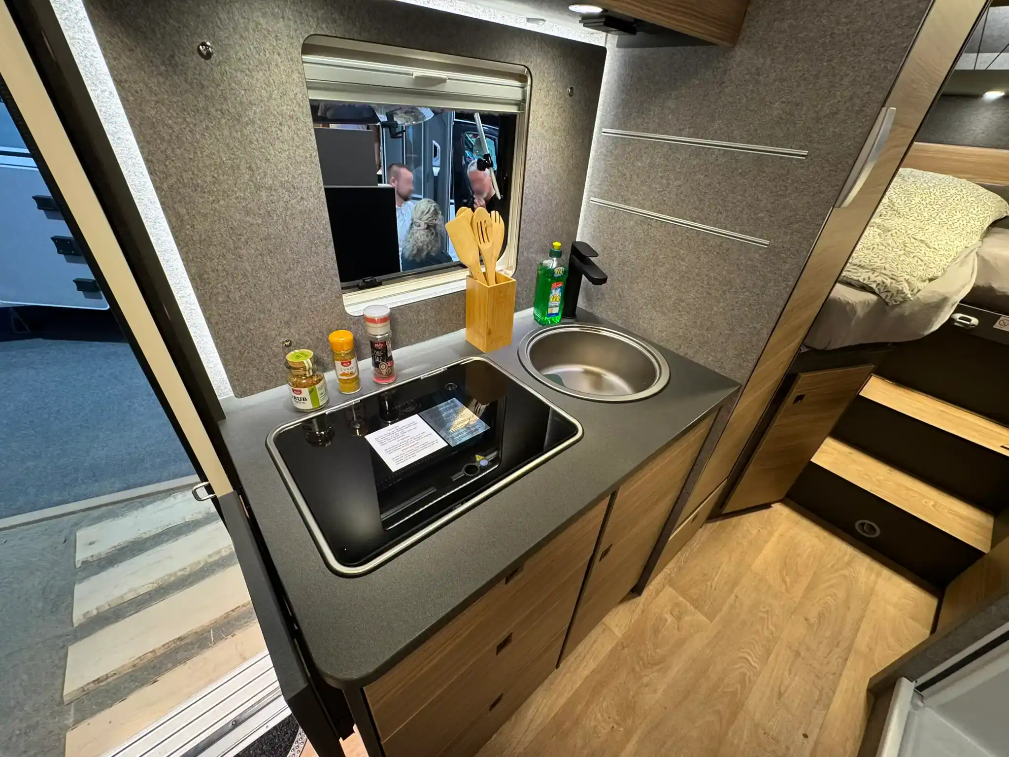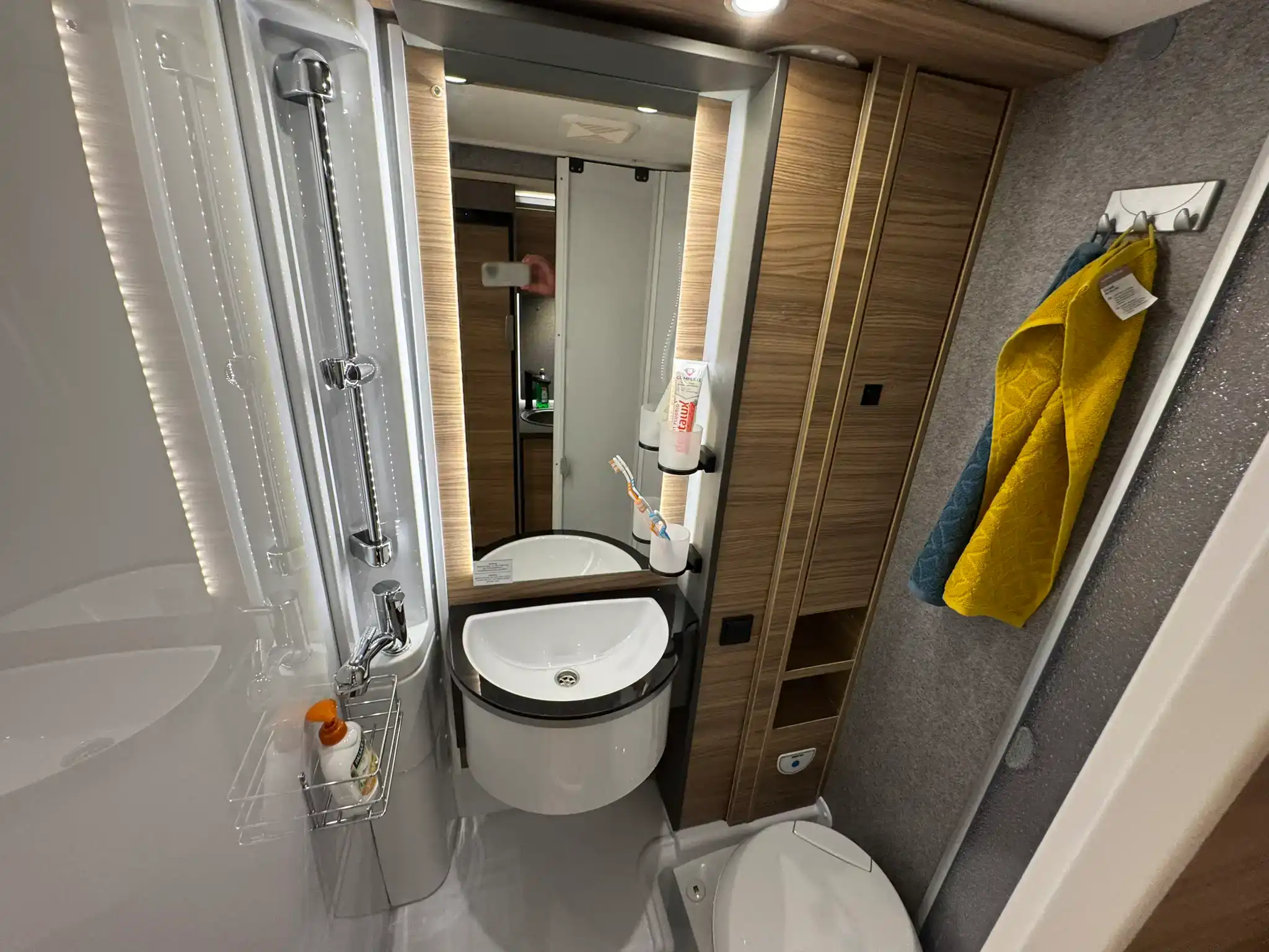 Innen überzeugt der Globebus mit durchdachter Raumaufteilung und hochwertiger Ausstattung. Küche, Bad mit Dusche, gemütlicher Schlafbereich – alles da, was du unterwegs brauchst. Kompakt von außen, großzügig von innen. Robust im Fahrverhalten, wohnlich beim Ankommen.
